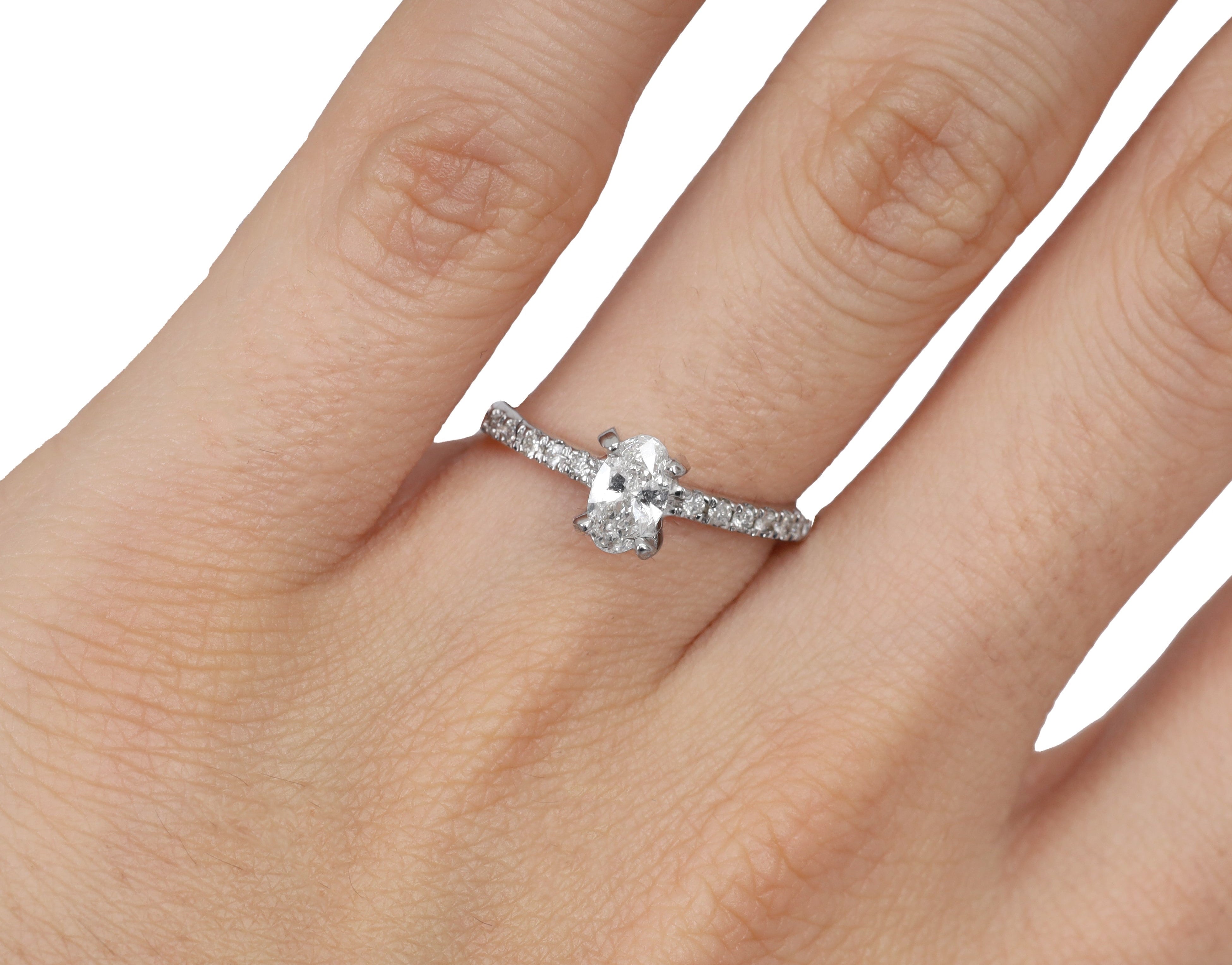 Anillo de Compromiso Diamante Oval .35 ct, Diamantes Pavé .12 ctw