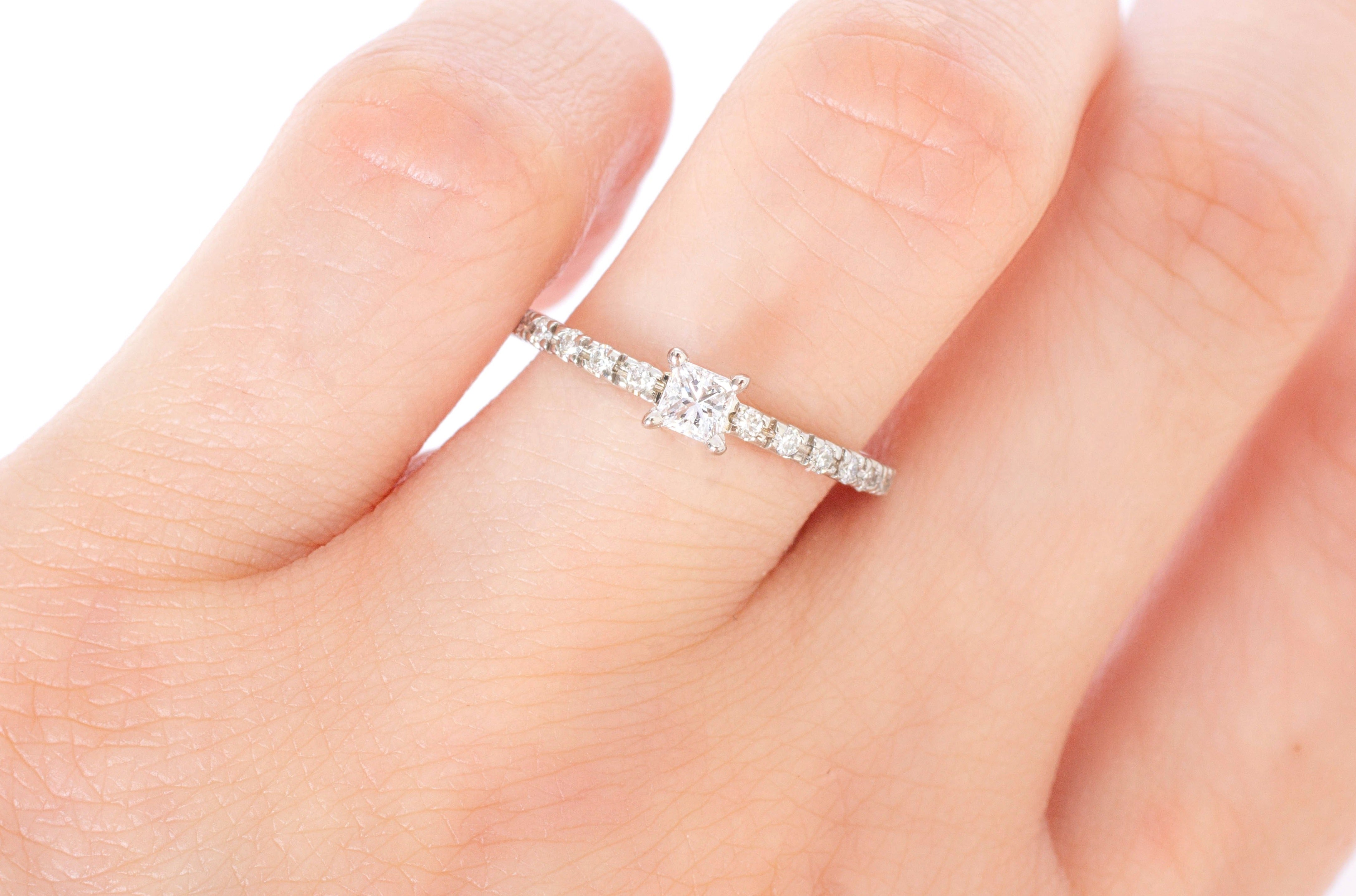 Anillo de Compromiso Diamante Princess .15 ct, Diamantes Pavé .12 ctw
