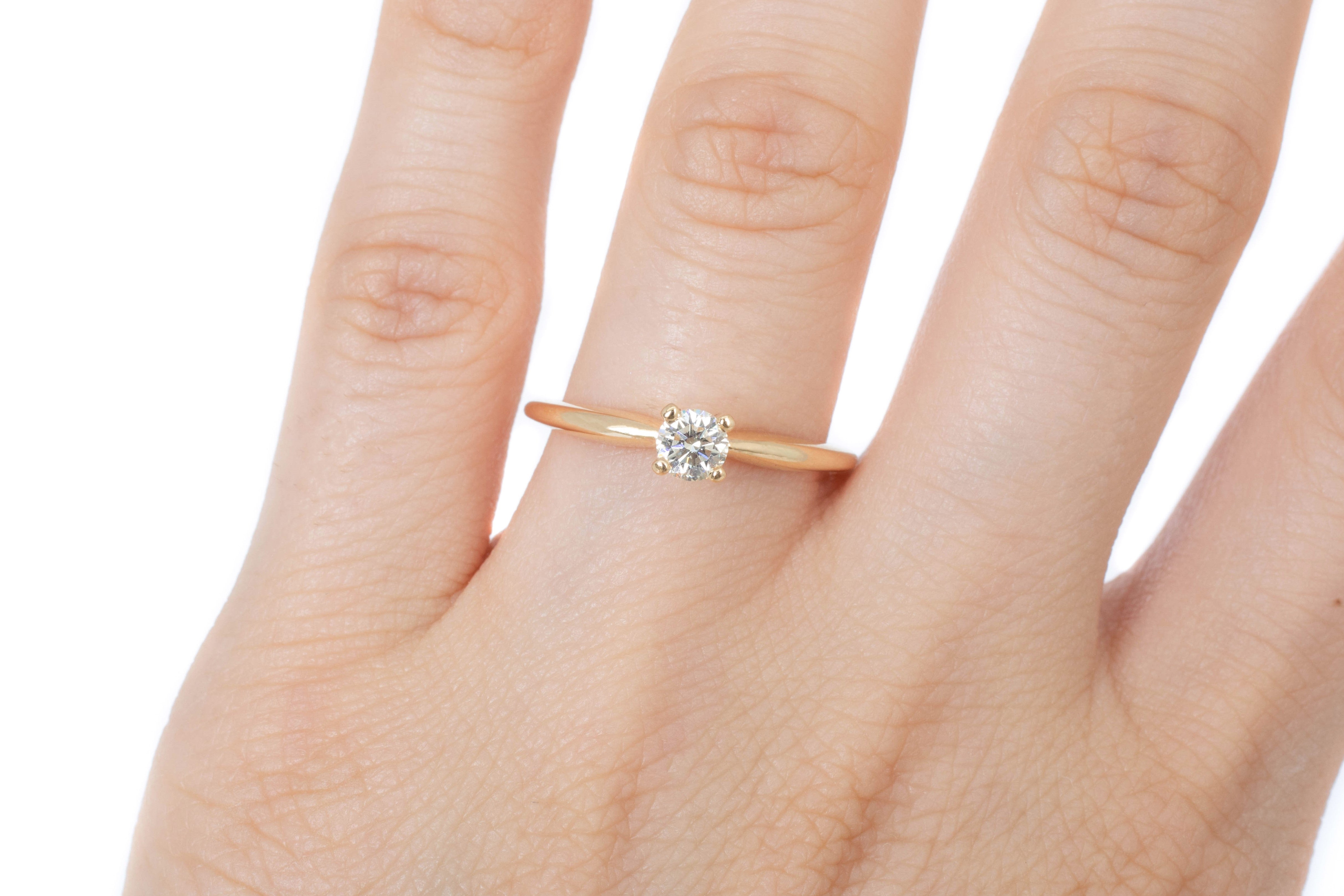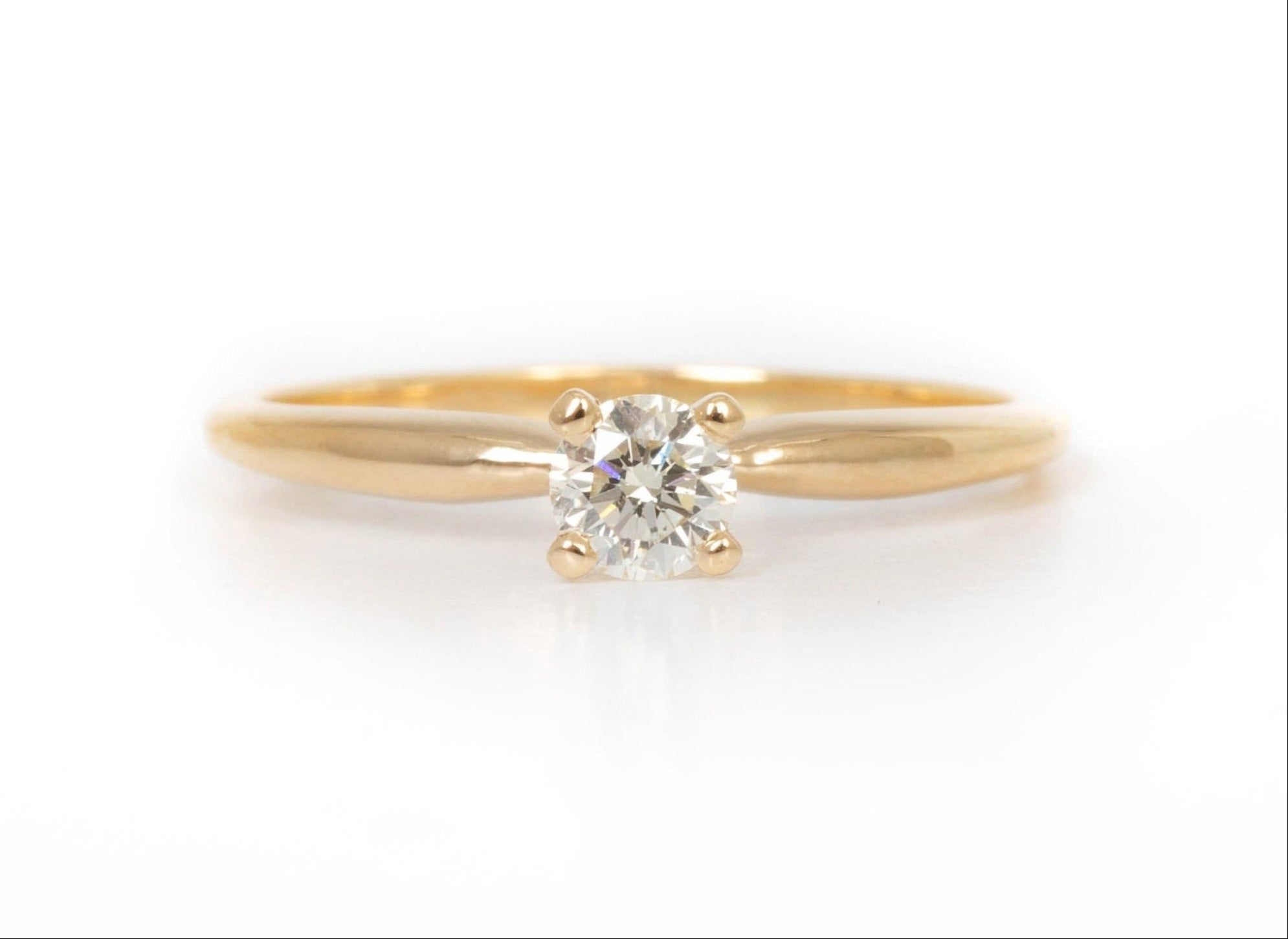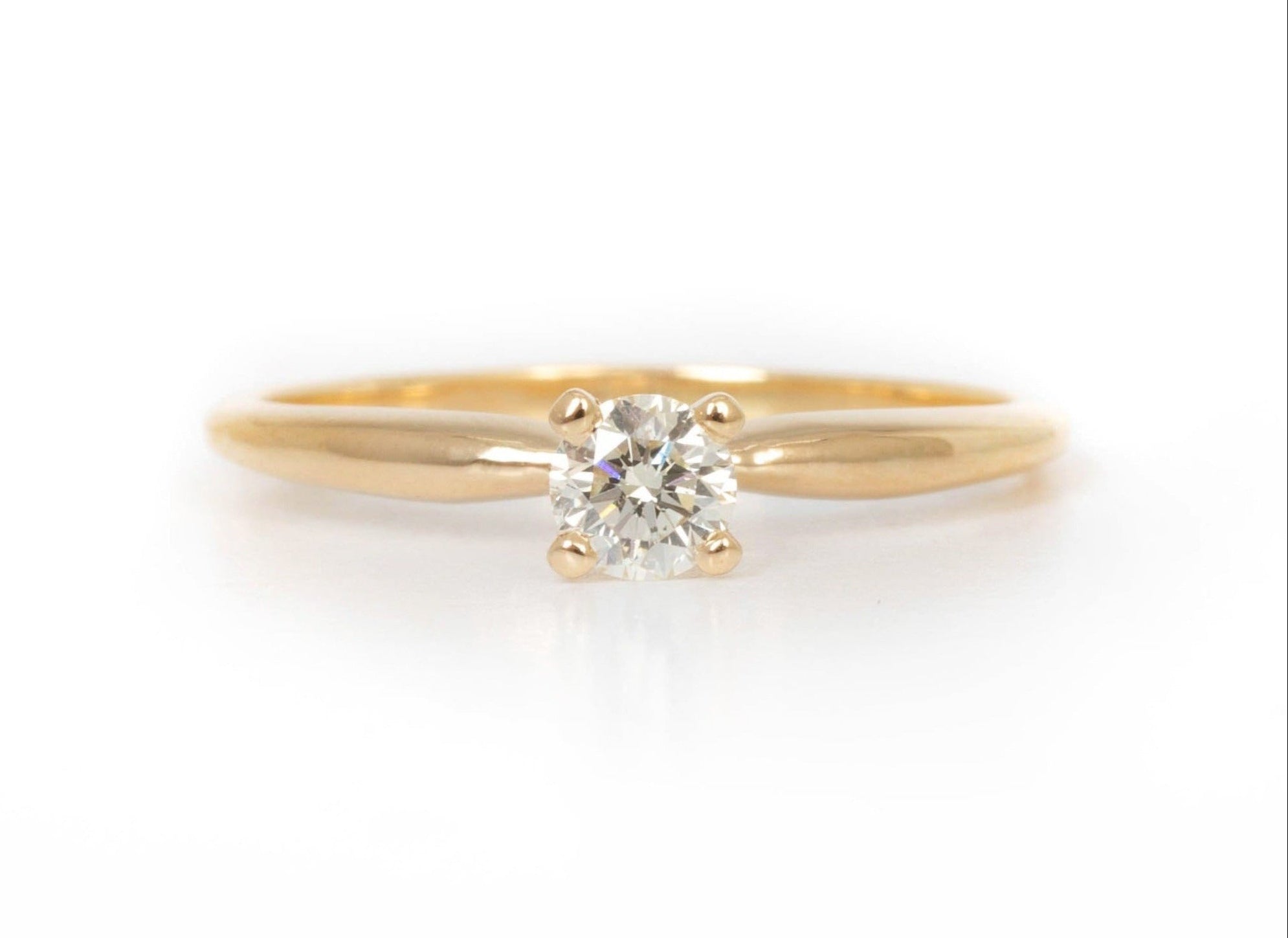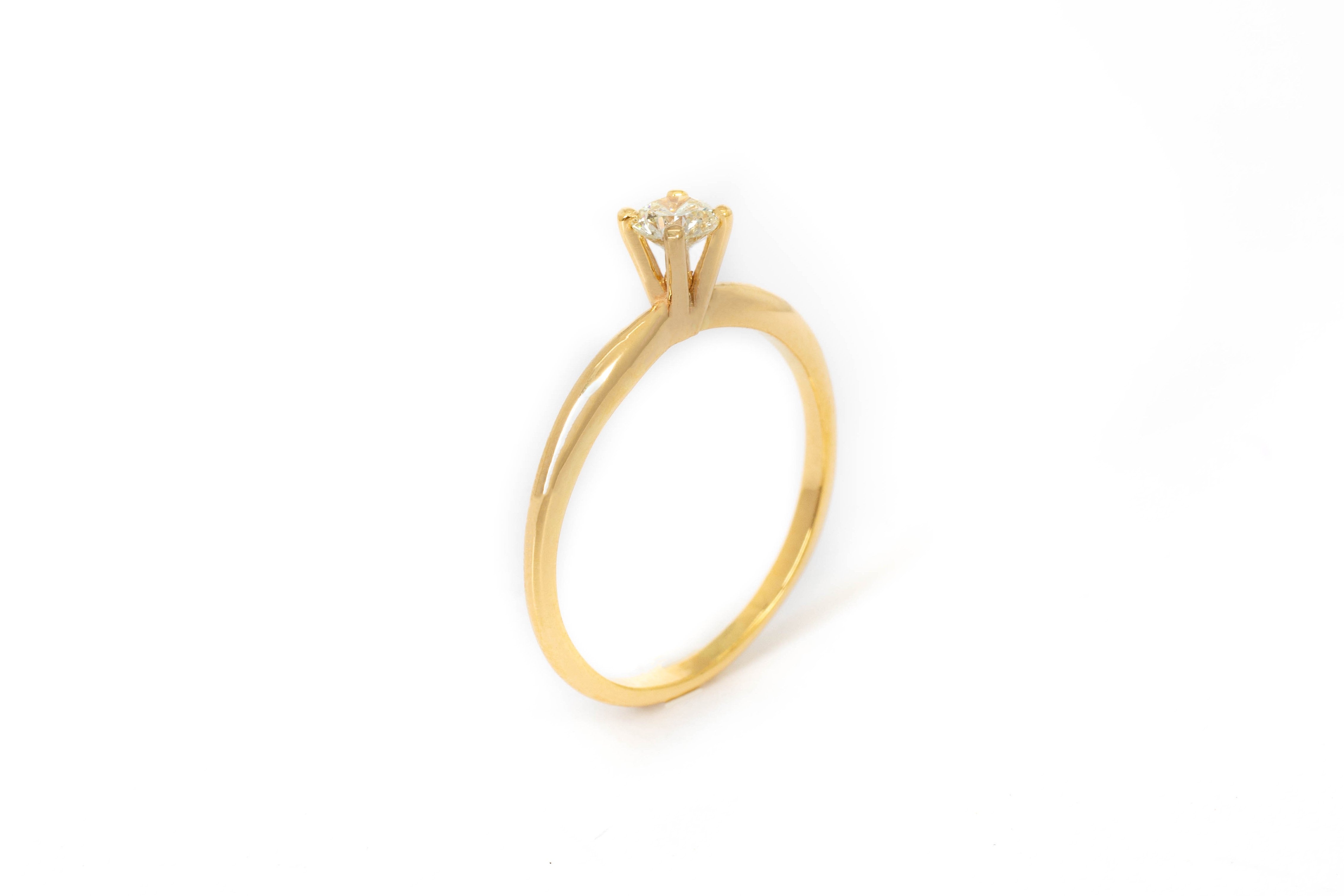 Solitario en Oro Amarillo de 14k, Diamante corte brillante .21 ct, Color G, Claridad VS2, Corte Excelente.