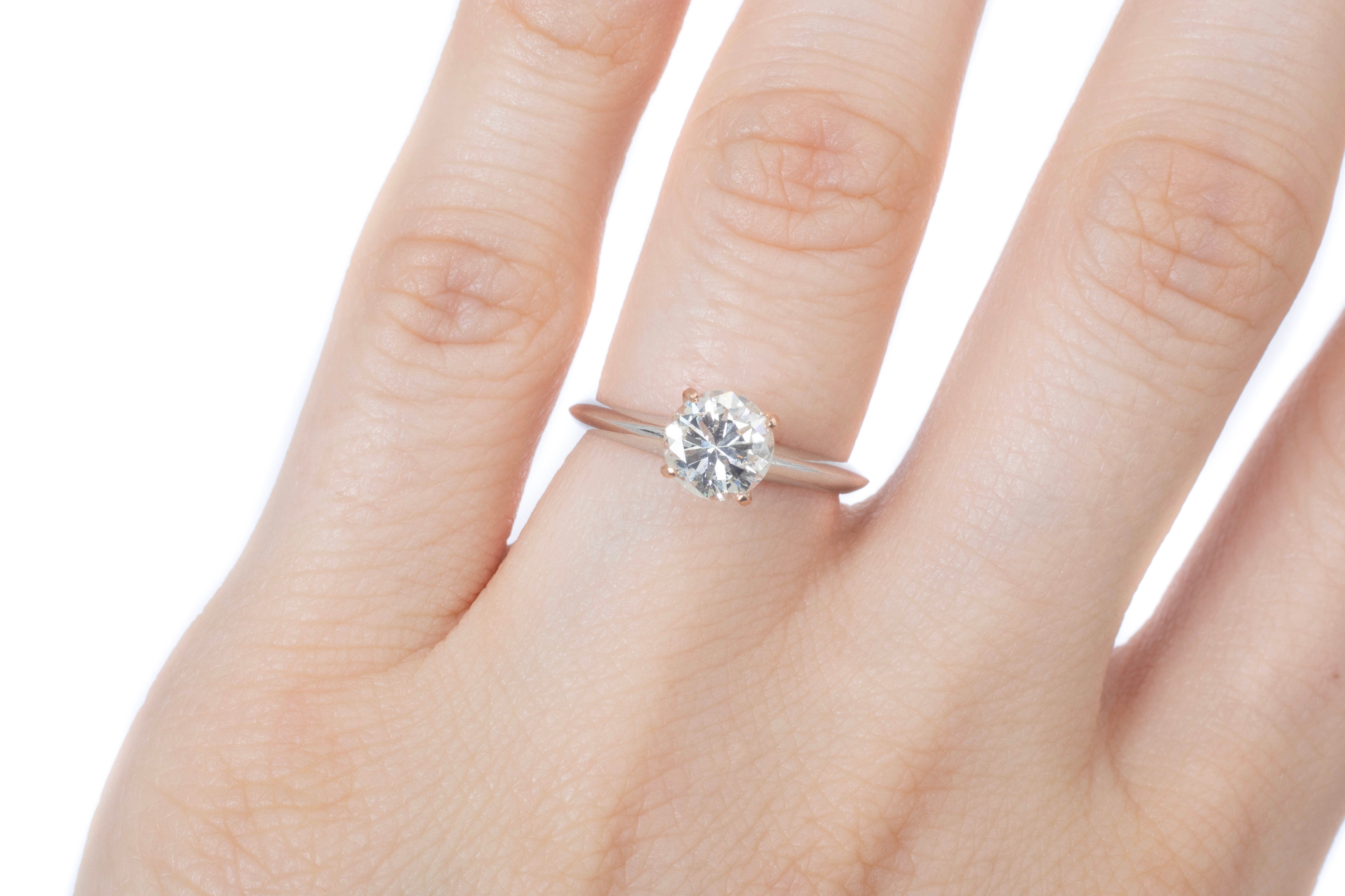 Solitario en Oro Blanco con boquilla en Oro Rosa de 14k, Diamante .75 ct, Color G, Claridad VS1, Corte Very Good.