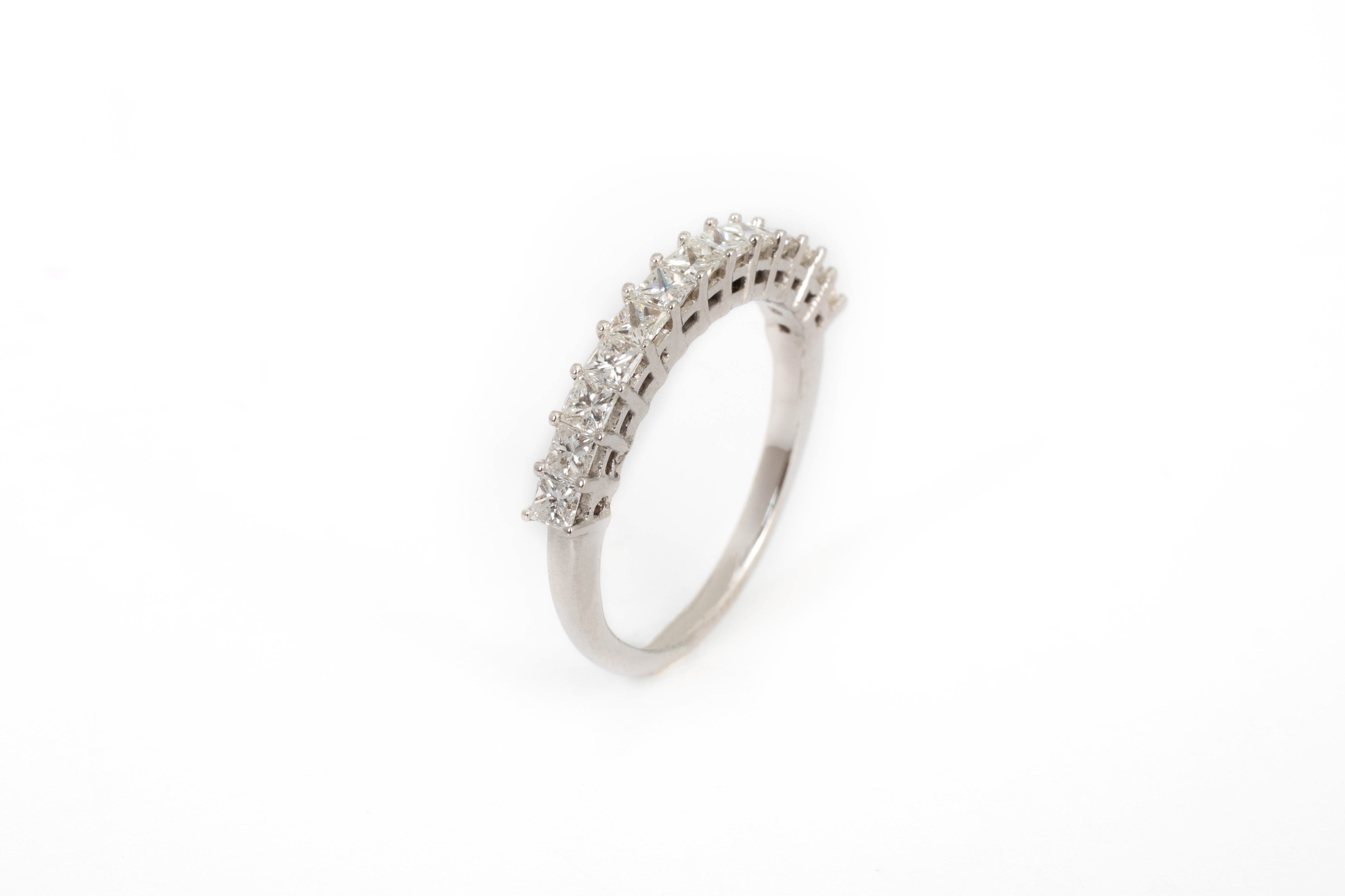 Churumbela en oro blanco de 14k con 13 diamantes en corte princess calibrados de .05 ct cada uno. Color F, Claridad VS2.