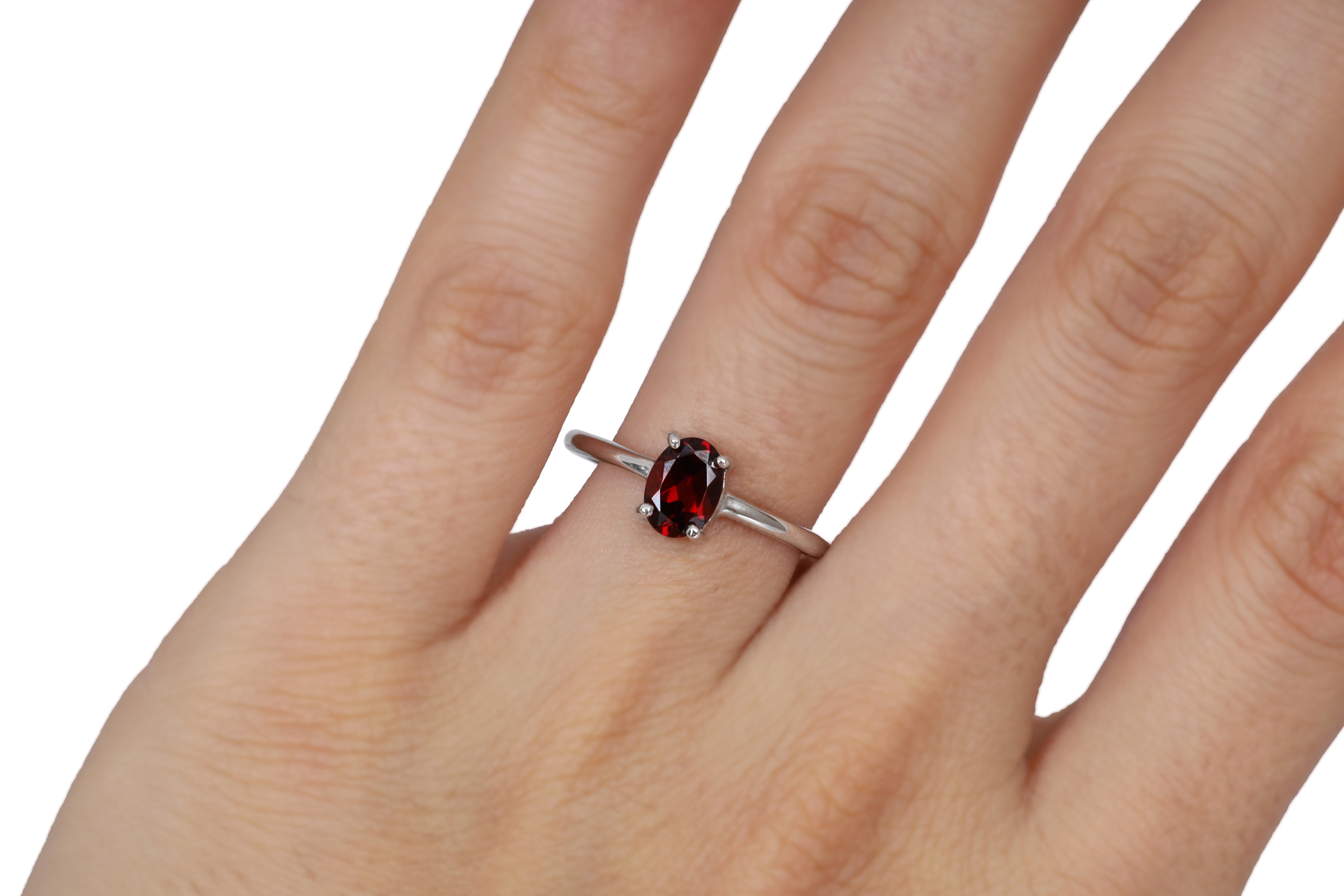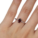 Solitario en oro blanco de 14k con granate corte oval de 1.00 quilate.